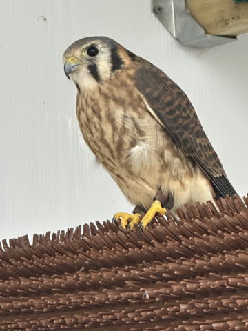 This kestrel was admitted to a rehabilitation facility 7/31/24 as a first year due to an irriversible injury to her right eye. The eye was removed 8/11/24 with no evidence of chronic pain.